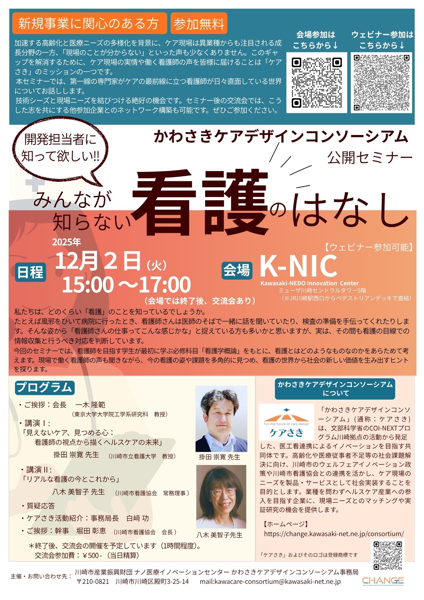かわさきケアデザインコンソーシアム 公開セミナー 「みんなが知らない看護のはなし」