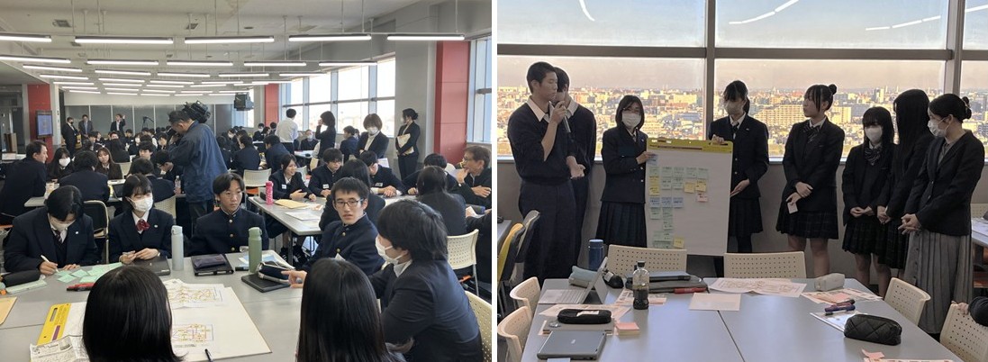 On November 26th, we held a joint workshop between third-year students from the Welfare Department of Kawasaki Municipal Kawasaki High School and the Science Department of Kawasaki City High School for Science and Technology. Students from the Welfare Department, who complete 13 weeks of nursing care practice annually, brought numerous real-world challenges from the field to the table. Science Department students listened intently to the explanations, their serious expressions reflecting how most of this was entirely new information to them. Subsequently, various ideas emerged, such as airbags to prevent fractures during falls and amphibious wheelchairs enabling bathing while seated. The atmosphere became highly energized, defying the fact it was their first meeting. TV Kanagawa featured this event in its evening news that same day, highlighting the necessity of care education in high schools.