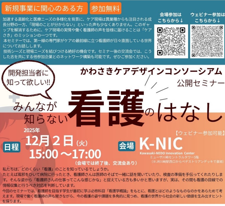 12/2(火)ケアさき 公開セミナー「みんなが知らない看護のはなし」